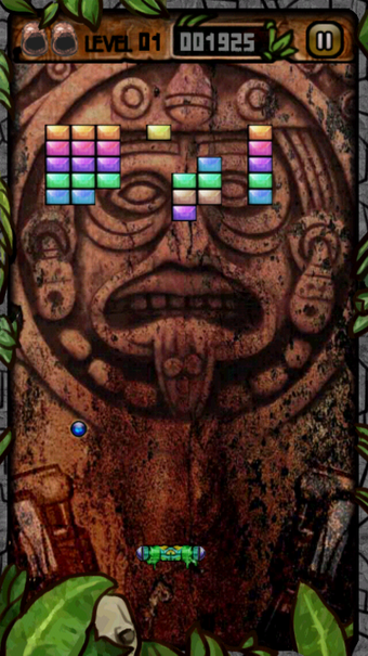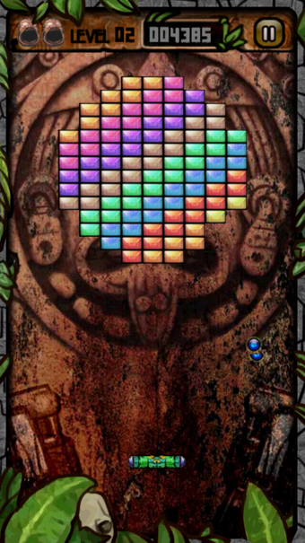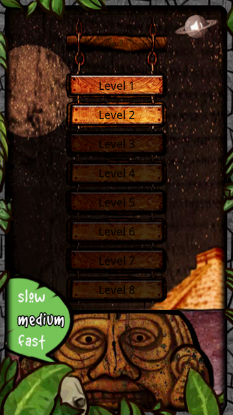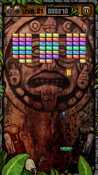 ブロック崩し Break the Bricksを開くと、古代アメリカ文明を彷彿させるデザインのゲーム画面が現れます。画面の上にはブロックの塊があり、画面の下には左右に動かせるバー(板)があります。バーで玉を打ち上げてブロックを壊し、全てのブロックを崩せばステージクリアです。ステージが進むとブロックの配置が変わり、だんだん難しくなっていきます。玉のスピードは3段階から選べますが、FAST(速い)にしてもさほど早くはなりません。